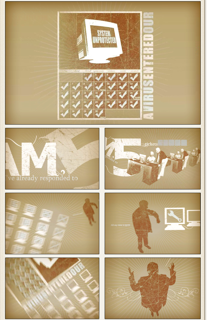 | CREATIVE DIR./DESIGN/ANIMATION | Intro design set retro-style to illustrate the old way of computer IT Departments and the problems that will soon be a thing of the past. | |||||||