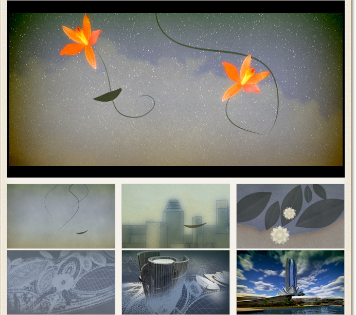 | PRODUCER/DIR./DESIGN/ANIMATION | Water-Color-Renders, City of Singapore and various leaf and flower elements modelled and textured in 3ds Max. End building modelled by Alberto and designed by Paul Steelman Design Group. Music by Tycho | |||||||