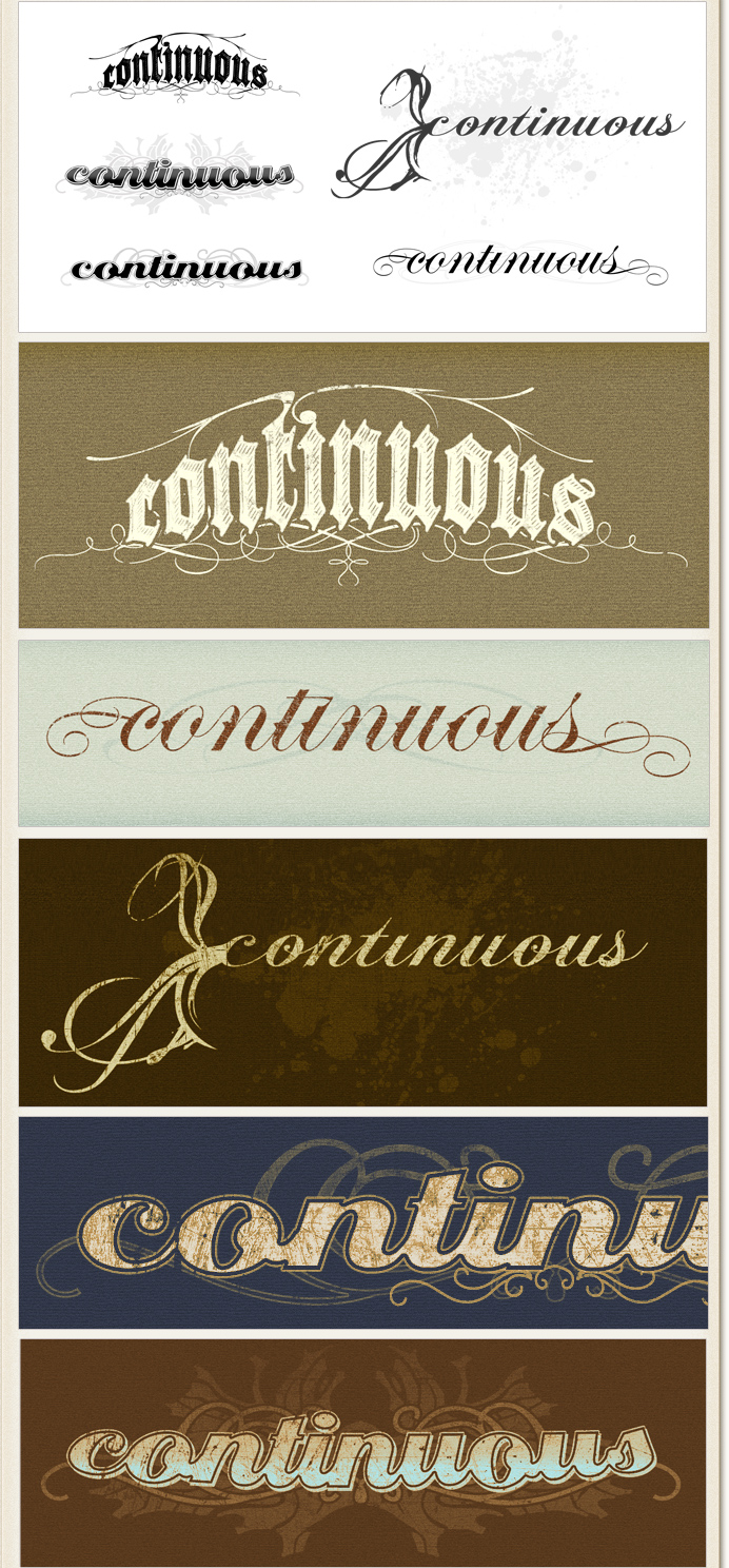 | ART DIRECTOR/DESIGN | Various type treatments for Continuous. Separations for Silk-screening. | |||||||