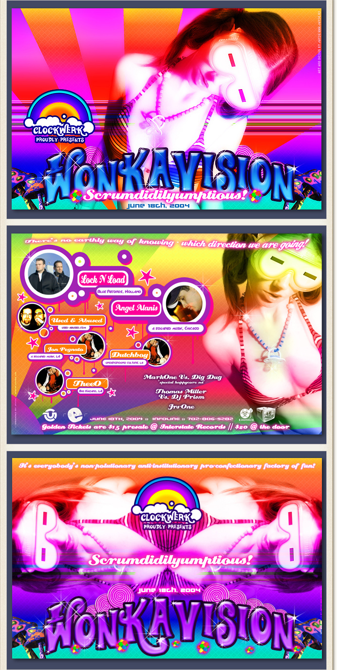 | ART DIRECTION/CONCEPT/DESIGN | RAVE FLYER VARIATIONS - 4/4 with Pantone Fluorescents. | |||||||