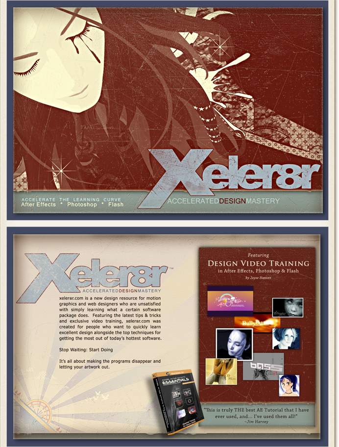 | ART DIRECTION/CONCEPT/DESIGN | Promo card for xeler8r featuring my art and training - w00t! 4/4 | |||||||